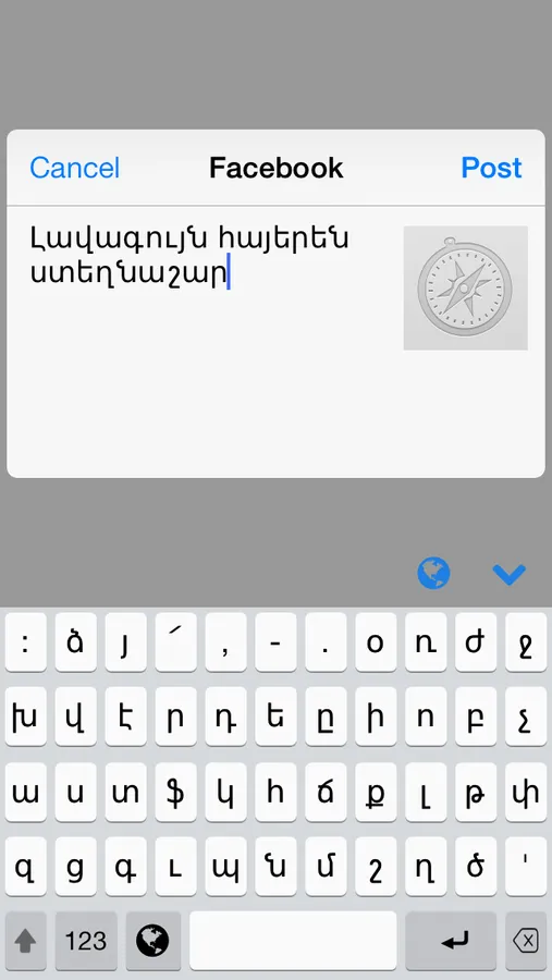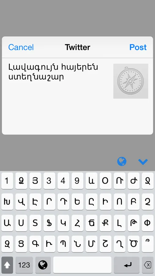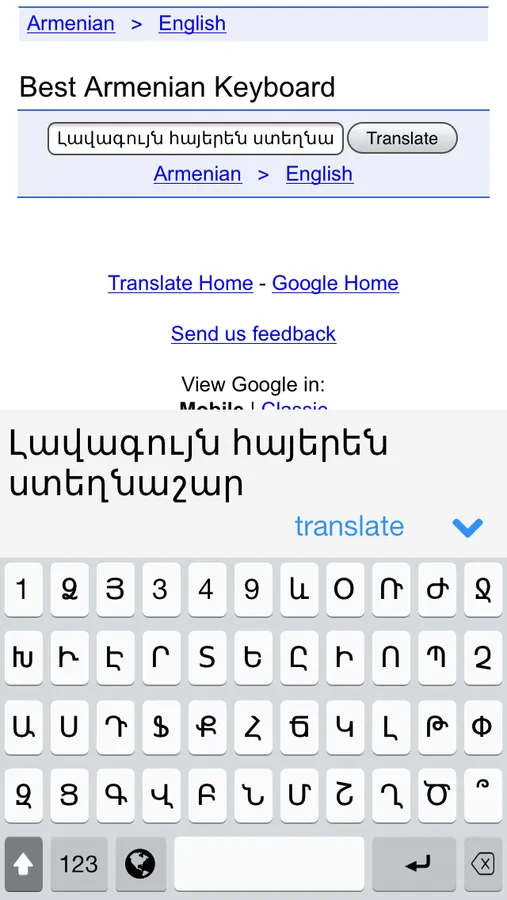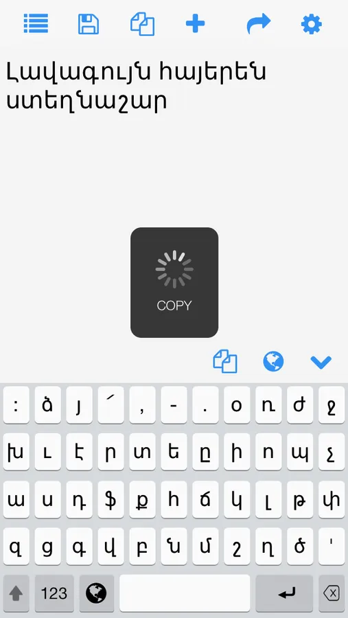 This Armenian keyboard permit you switch between Eastern and Western layout.