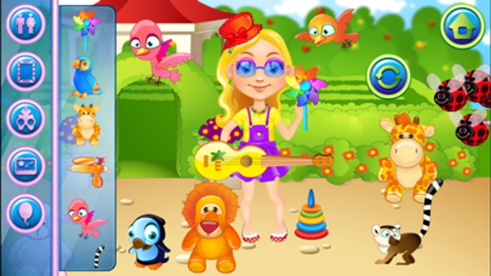 Create your own party at the Photo Fun room with lots of backgrounds, characters, dress-up activities and cute furry animals like horsey, birds and much more! Invite all your friends to the party! There is also much more to explore.