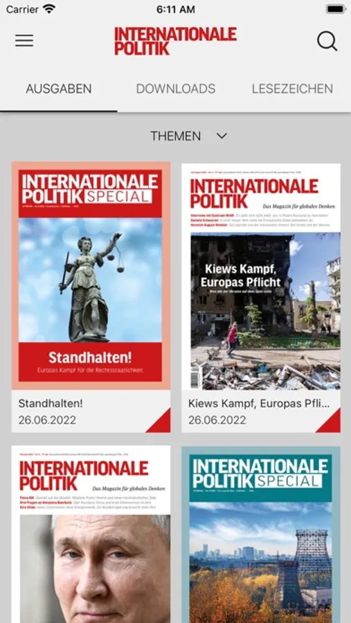 Mit der IP-App können Sie nun Deutschlands führende außenpolitische Zeitschrift auch ganz bequem auf Ihrem Tablet oder Smartphone lesen. Entweder durch den Kauf einer Einzelausgabe oder mit dem praktischen IP-Abo.