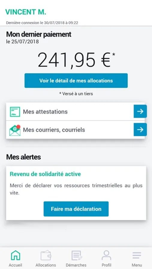 * Télécharger vos attestations et votre relevé de compte Caf.