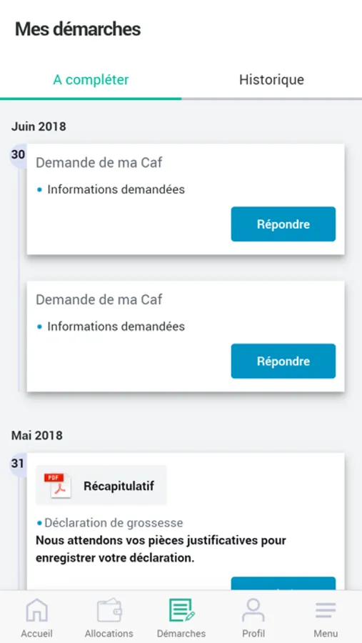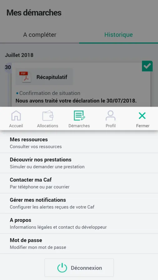 * Répondez aux questions de la Caf dans la rubrique Mes démarches et transmettez les documents nécessaires directement depuis votre smartphone