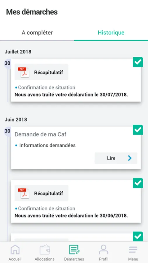 * Suivez l'avancement de vos démarches faites sur caf.fr et soyez informés à chaque connexion ou via les notifications pushs en cas d'éléments manquants