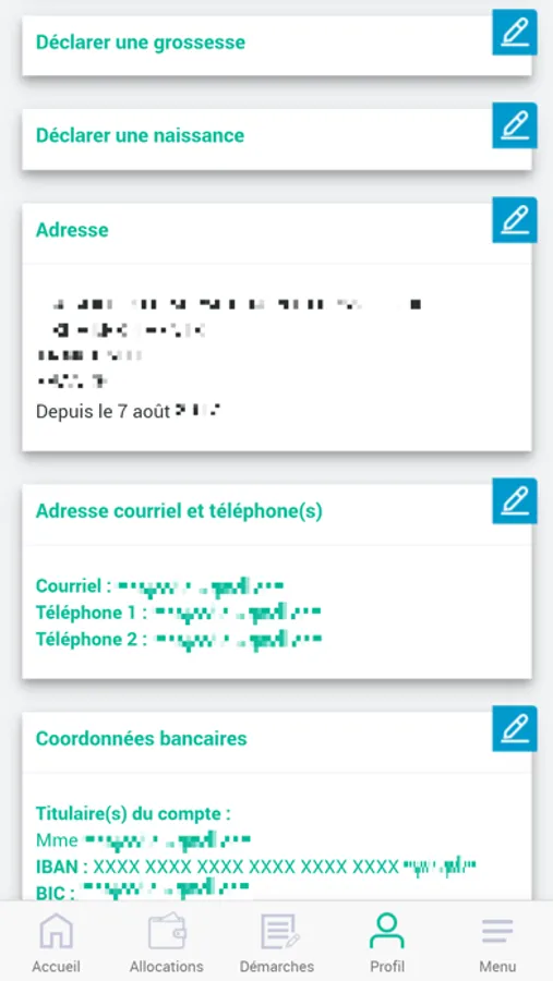 Depuis l'application, vous pouvez aussi gérer votre compte : donner délégation à votre conjoint, modifier votre mot de passe…