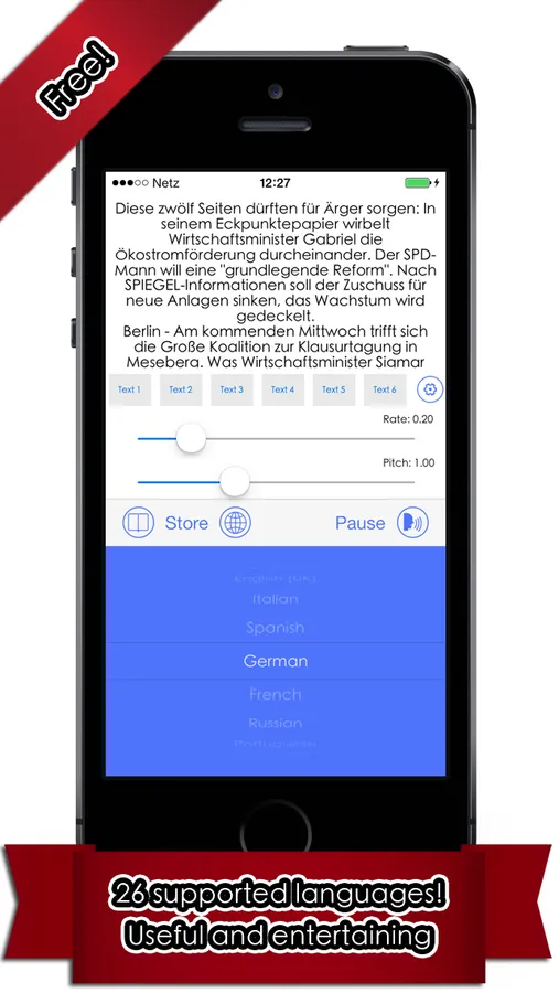 Talking Phone allows your device to read any text in 26 different languages with the fantastic voice of Siri ! Of course also in English!