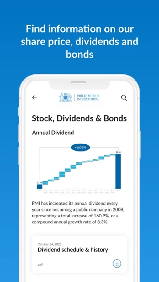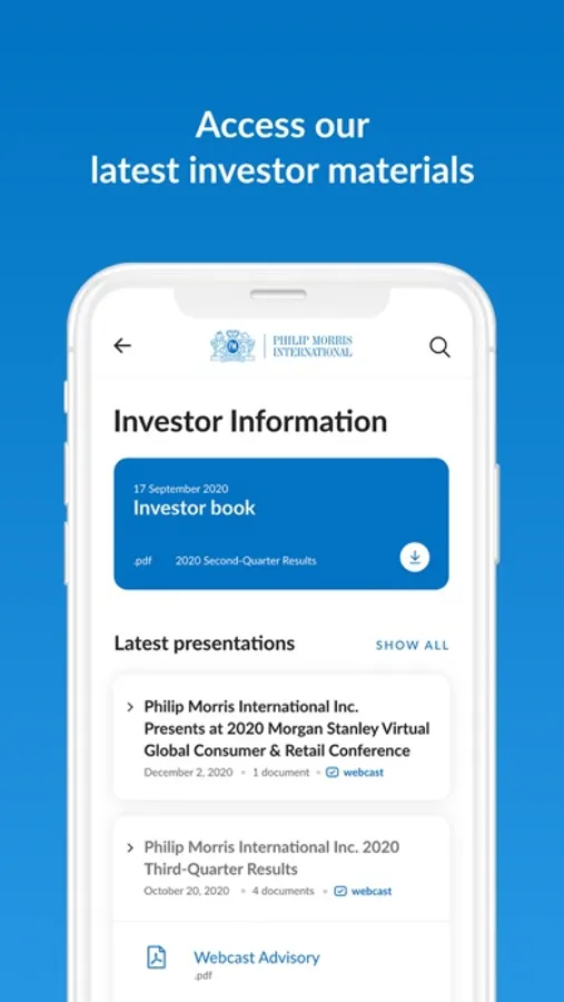 Philip Morris International Inc. (PMI) has launched a new Investor Relations Mobile Application which provides users with easier, more dynamic and comprehensive access to the company’s Investor Relations information, including: stock price quote, press releases, SEC filings, investor materials, as well as live and archive webcast playback of earnings calls and investor presentations.