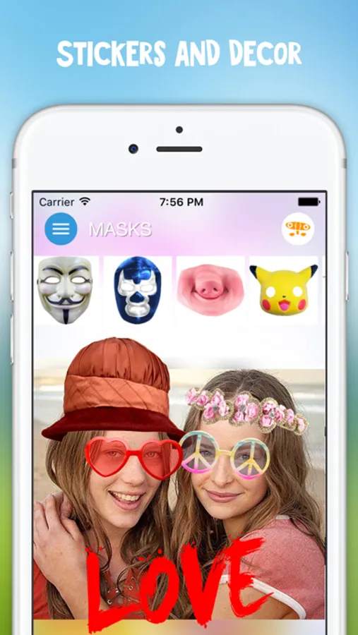 Decorate your photos with this photo editor, choose a photo from the gallery or take a shot with the camera, then apply the frame or calendar you like, then choose any decoration like stickers, text, phrases or photo elements and you can share this photo to your friends and save to your device.