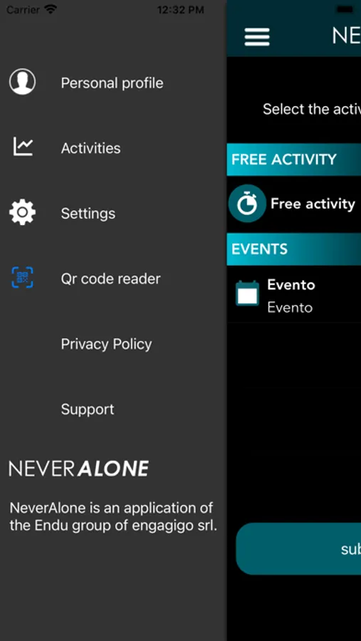 NeverAlone detects your movements and automatically shares your GPS coordinates to your (customizable) contacts in case of unexpected stop.