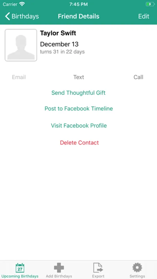 + Call, Email, Text, or post to a friend's Facebook wall to wish a friend Happy Birthday.