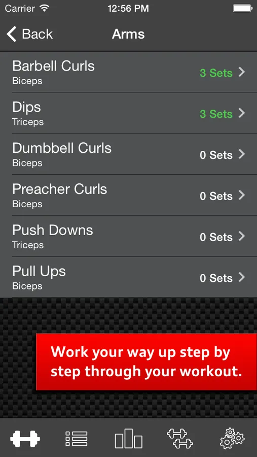 - …and per muscle group (abdominals, back, biceps, chest, legs, shoulders, triceps, wrist, ….)
