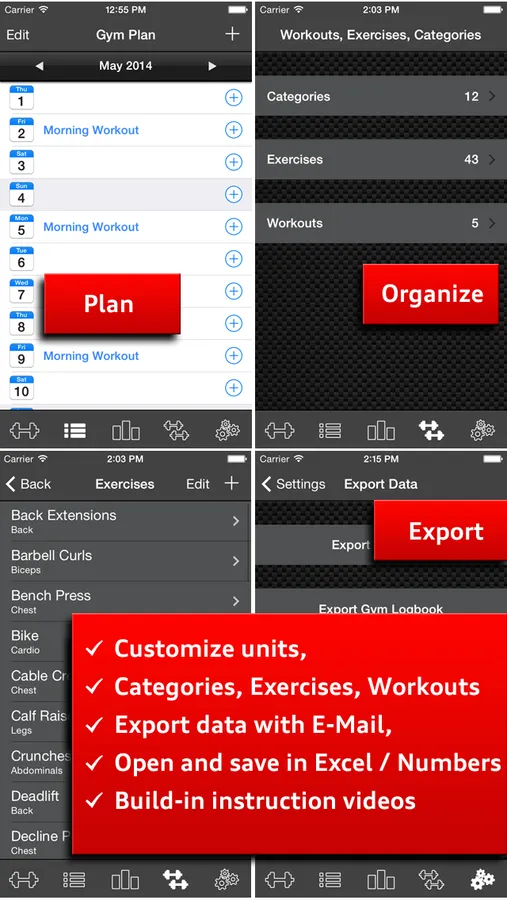 - Customize your list of exercises and build your own workouts with a couple of clicks.