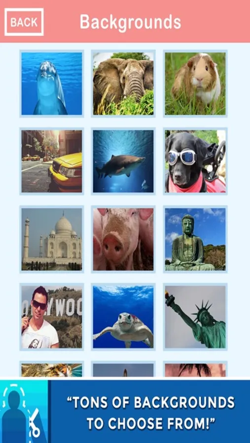 Simply take a photo (or upload one of your own!) and using the super-easy to use interface, draw an area where you would like to crop, then simply crop and position however you wish on your chosen background! Resize and Re-scale on-the-fly - it really is that easy!