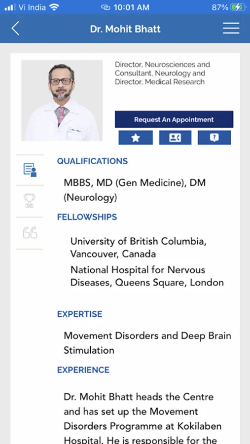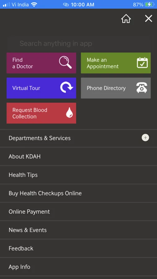 Kokilaben Dhirubhai Ambani Hospital launches its newly designed mobile application that makes it easy to Find A Doctor, Make Appointments, keep track of your medications, get in touch with your loved ones in case of a medical emergency and much more. You can request appointments, arrange for home collection of samples, ask a doctor, view treatment options and doctor details, all at the touch of your screen.