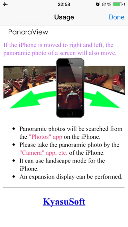 - Please take the panoramic photo by the "Camera" app, etc. of the iPhone.