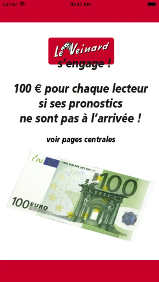 Le seul journal qui s'engage à rembourser à chacun de ses lecteurs 100 euros par jour si ses pronostics ne sont pas à l'arrivée.