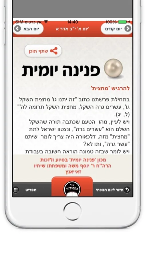 אפליקציה המפיצה אימרה יומית ודברי תורה בנושאי פרשת השבוע. ניתן להקדיש אמרות לזכות קרוביכם.