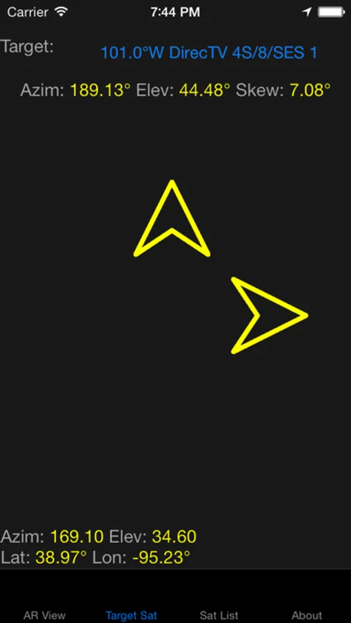 Use Target Satellite View to find or to "lock onto" a particular satellite. Direction arrows simply guide you to the desired satellite position.