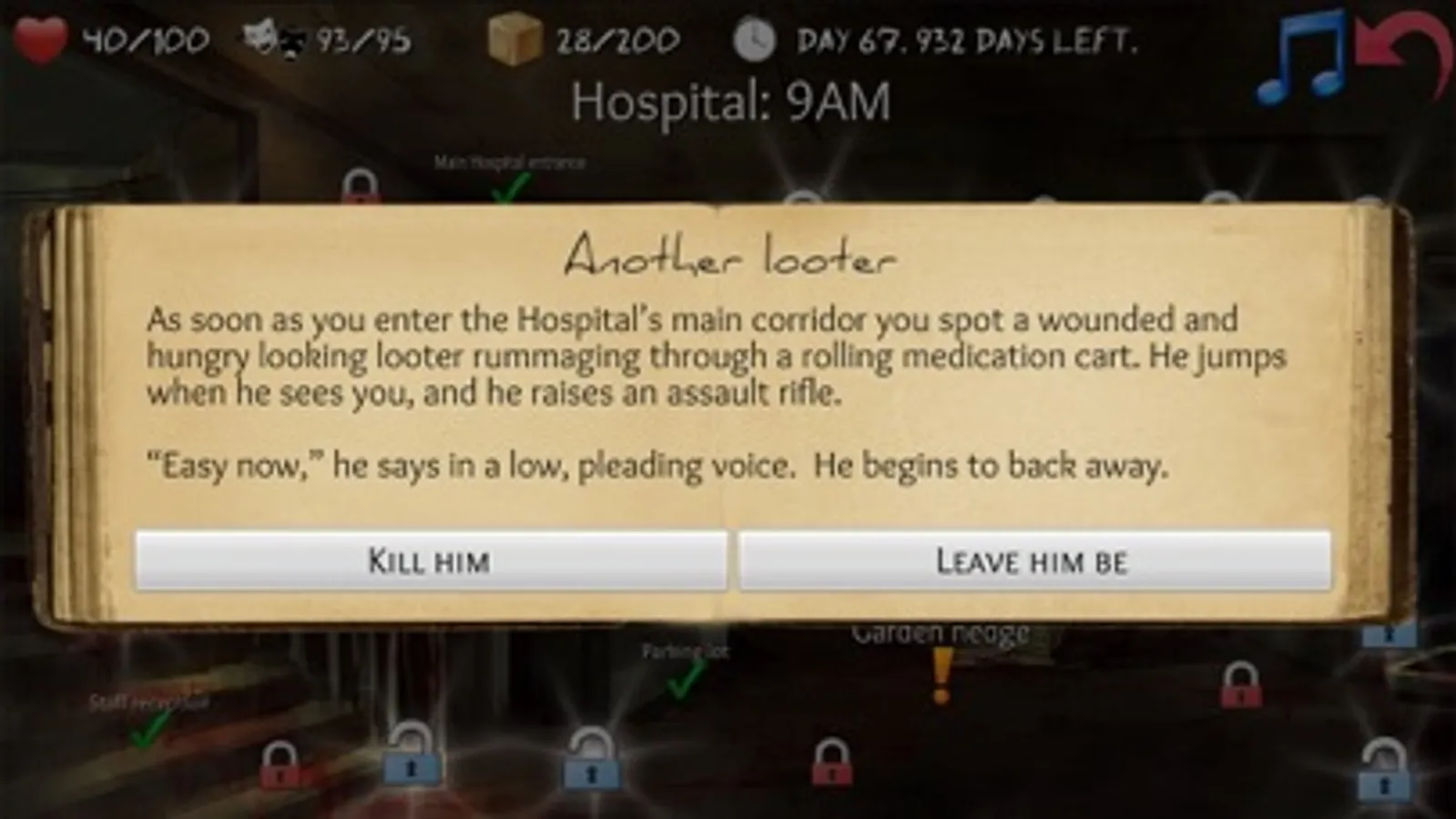 + There are 1000s of unique and professionally written events to encounter and even more tough decisions to make! All decisions have consequence; small decisions early in the game can have profound effects later! Meet other survivors and help or exploit them. Plenty of moral decisions will question how far you would go to survive and affect your final score... can you survive without losing yourself?