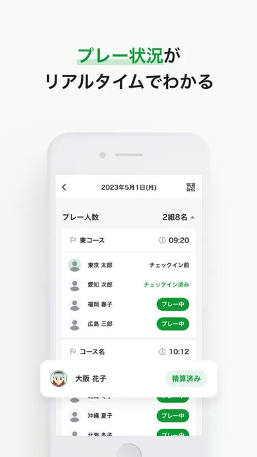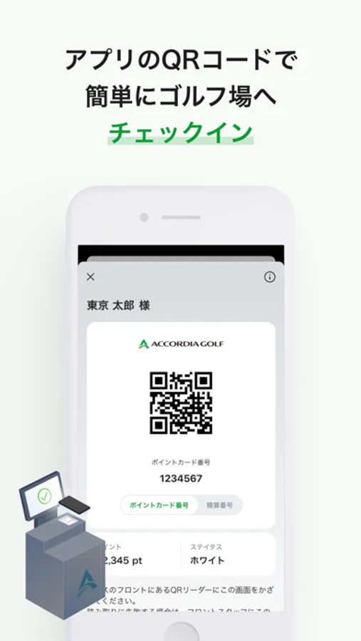 ゴルフ場でアプリをかざすだけでチェックインできます。