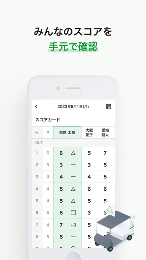 カートナビで入力したスコアがリアルタイムで連携されます。