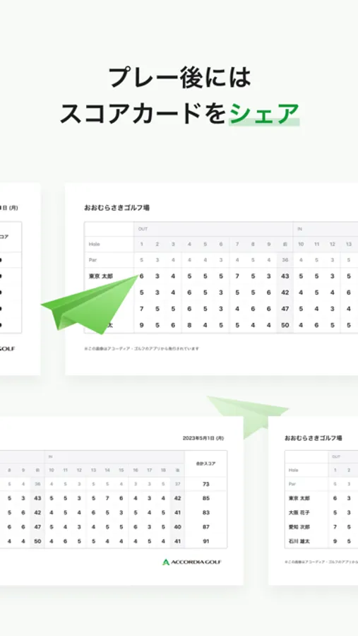 同伴者のスコアも一緒にスコアカードに保存できます。