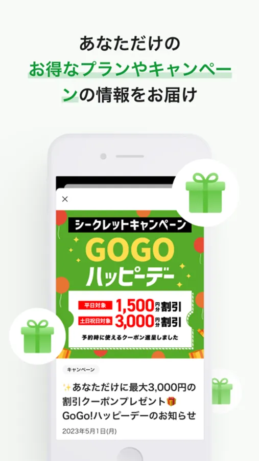 プレーをお得に楽しんでいただける様々な情報が届きます。