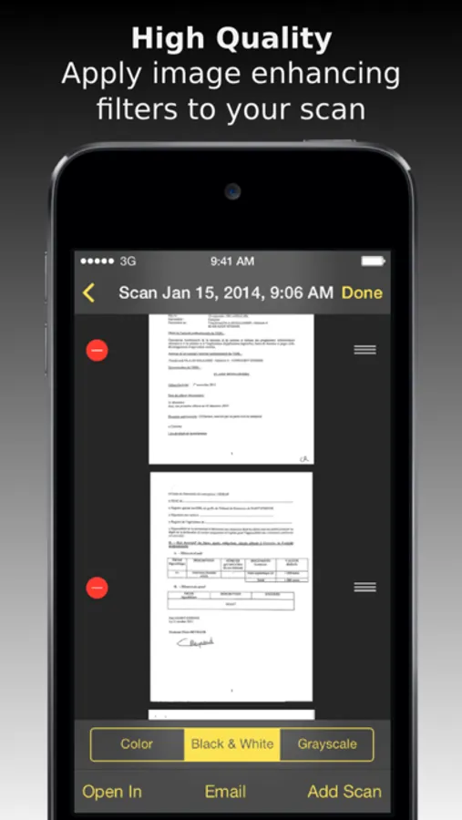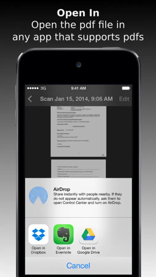 ScanBee turns your iPhone into a portable scanner. It allows you to scan any document into a high quality pdf file.