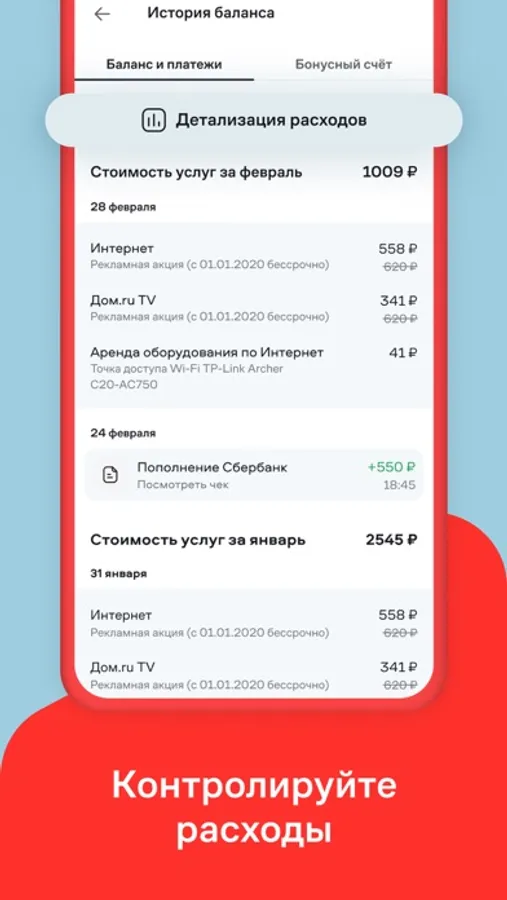 • А если непонятно, почему вам нужно заплатить именно такую стоимость за свои услуги, вы всегда можете разобраться из чего эта сумма состоит в разделе История баланса.