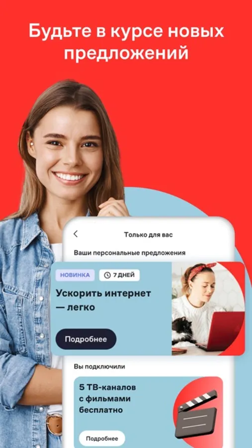 • В разделе Скидки и акции мы собрали для вас только выгодные предложения. Узнавайте о новых акциях и подключайте их в любой момент.