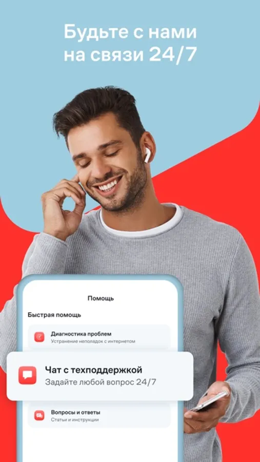 • В приложении есть удобный чат с поддержкой. Мы там всегда на связи 24/7: поможем вам решить проблемы с услугами и ответим на любой вопрос.