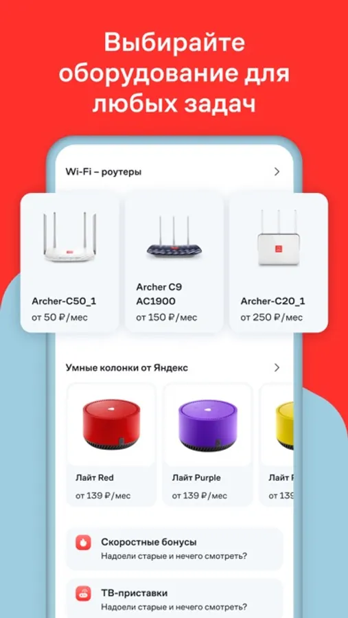 • У вас другой роутер? Вы всегда можете заказать роутер через приложение в 2 шага – подберите подходящий для вас и выберите удобную дату и время доставки.