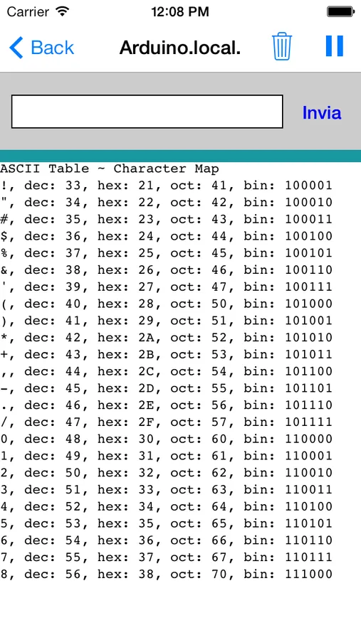 With Arduino serial monitor is possible to debug a sketch from iPhone or iPad. It works like serial monitor integrated in Arduino IDE, open the connection with Arduino board and You will see all messages in the device screen.