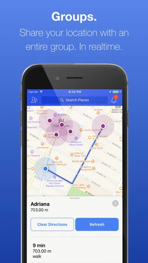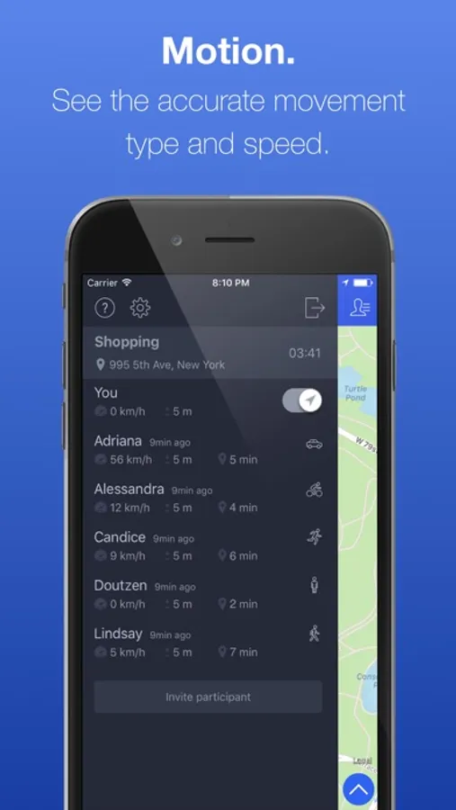 • Realtime location sharing: Let your friends see you moving on the map in realtime.
