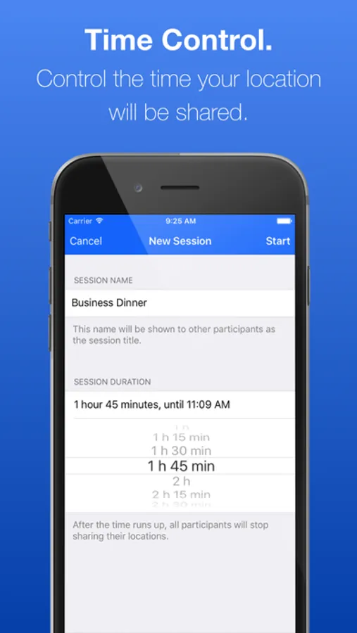 • Safety included with active duration control: No location sharing after you left the session or it has expired.