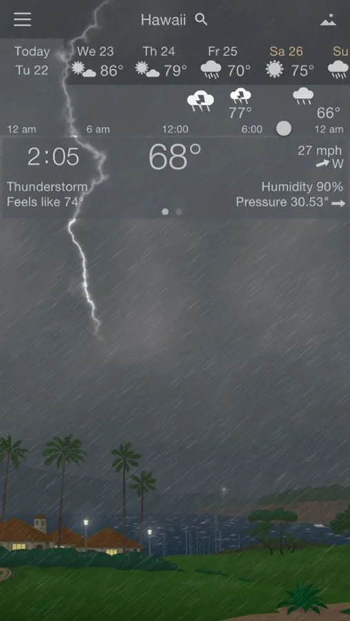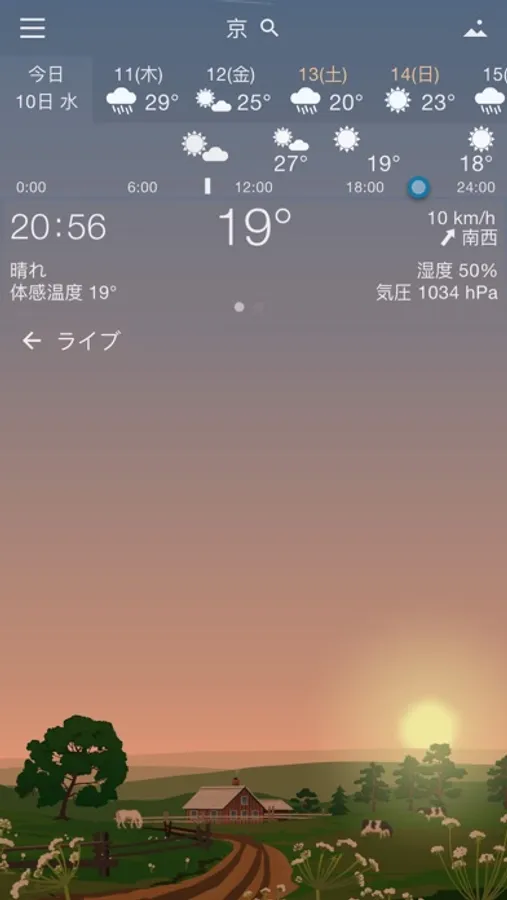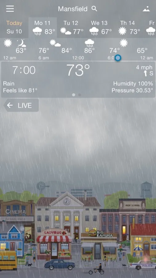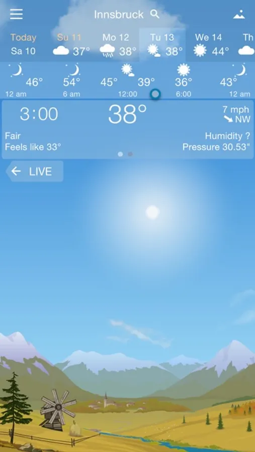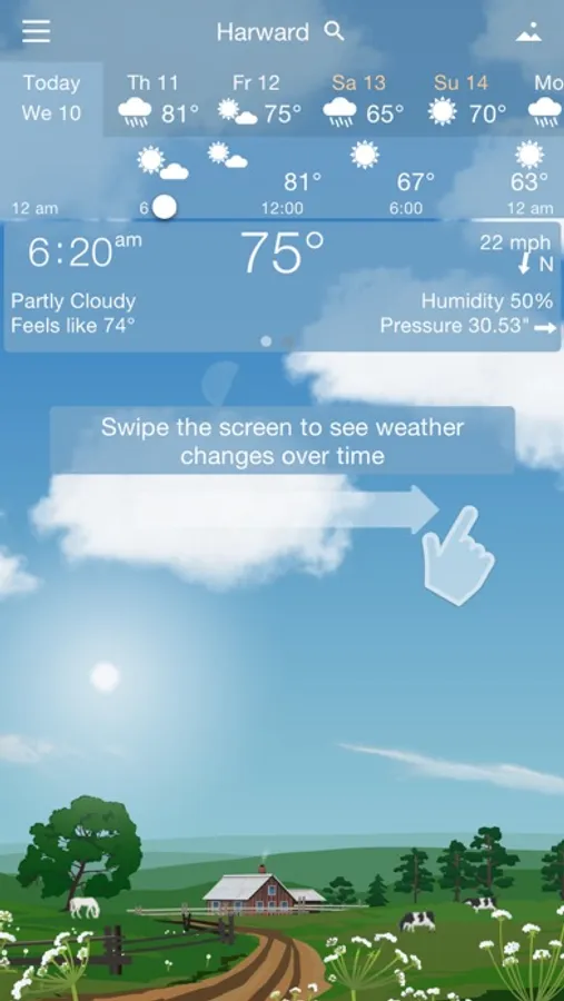 Scroll the time through the day and watch the weather change. Simply slide your finger from left to right.