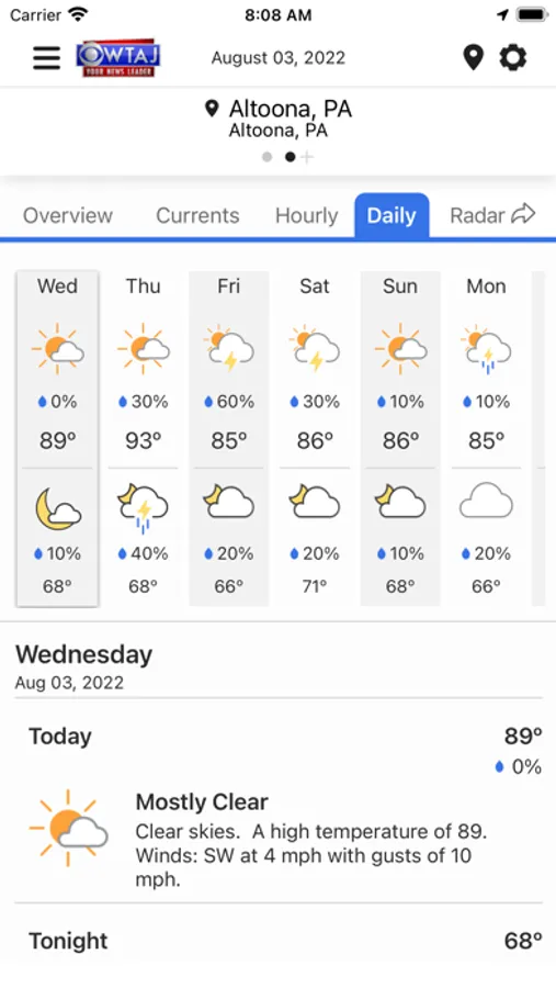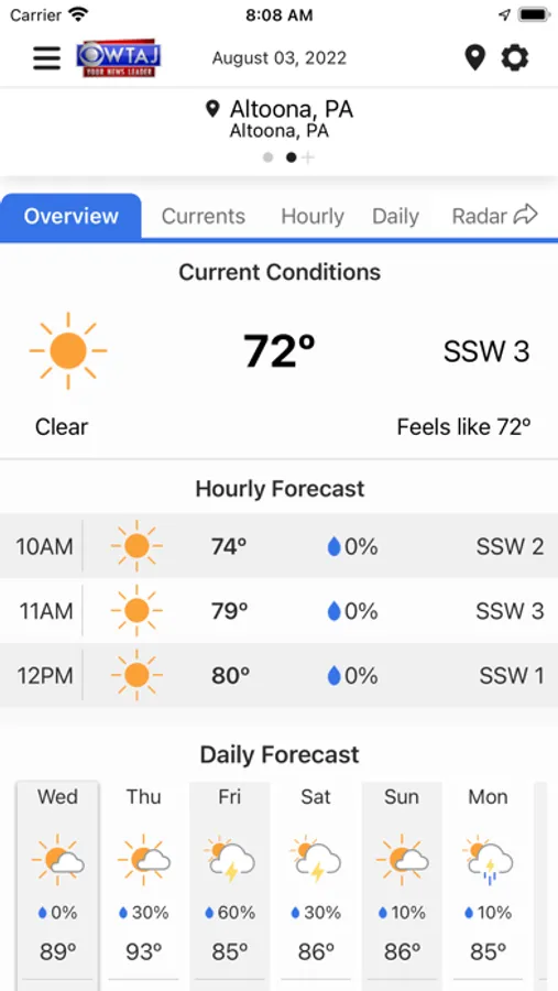 As your weather authority, the WTAJ Weather app provides forecasts you can depend on.