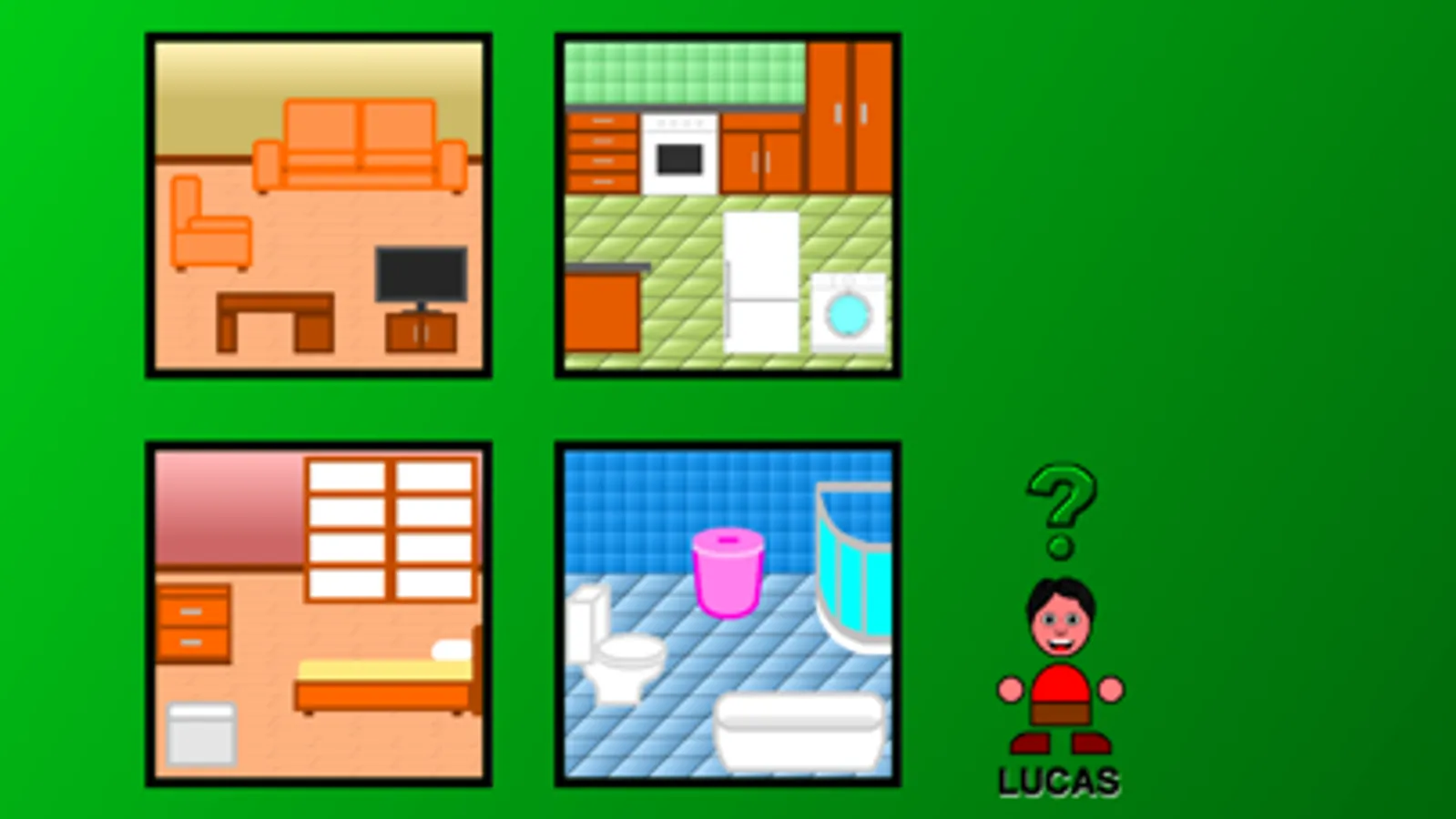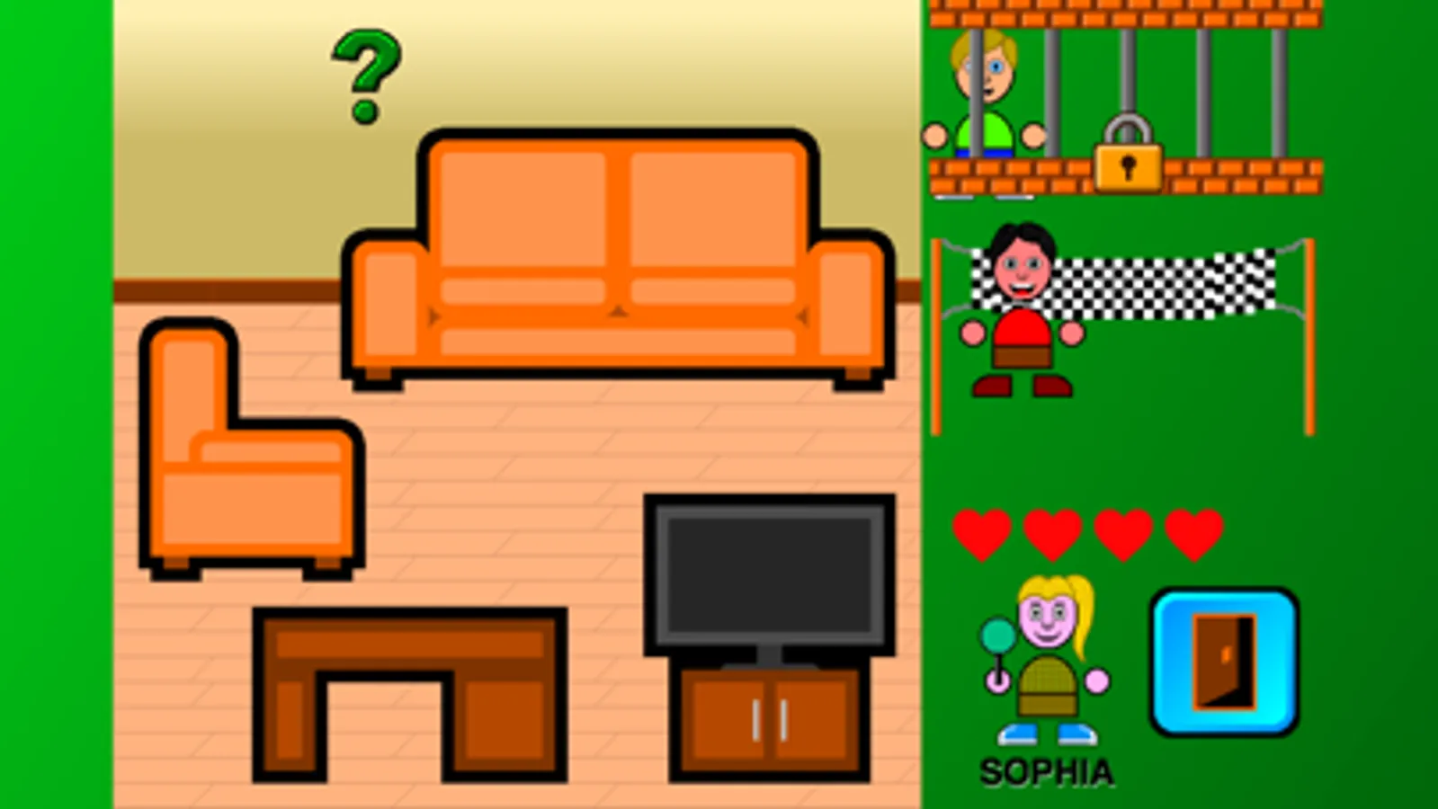 The gameplay is based in a virtual house with 4 rooms and 4 sites in each room to hide.