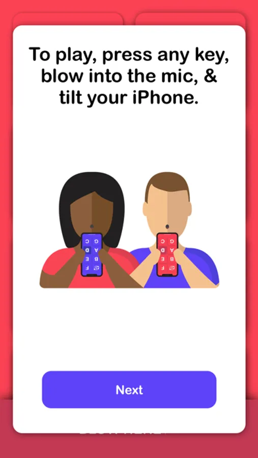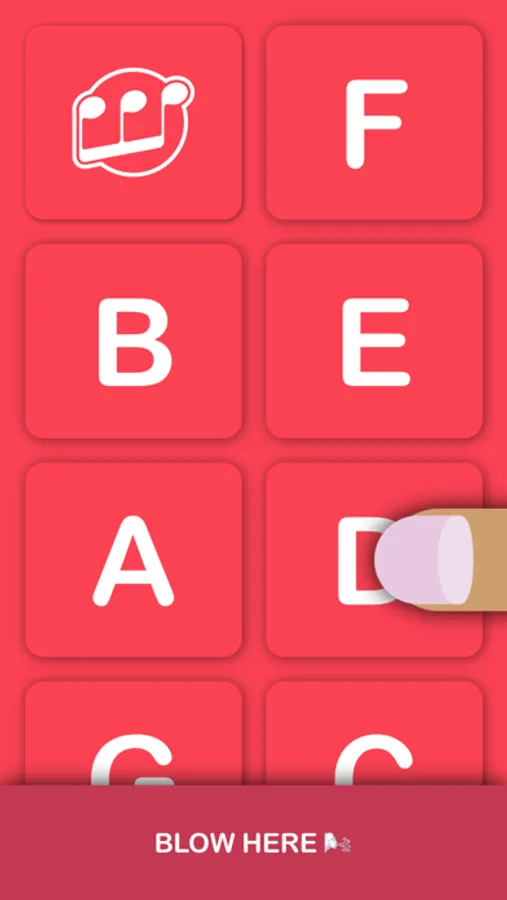 To play, simply hold down the keys on the screen and blow lightly into the microphone at the same time.