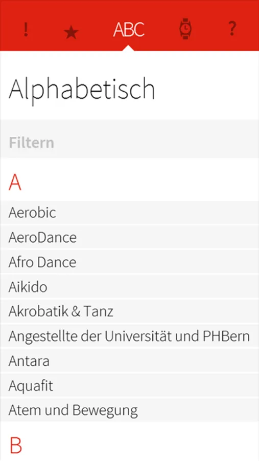 - Alphabetische Auflistung der Verfügbaren Angebote