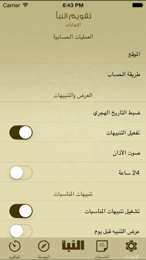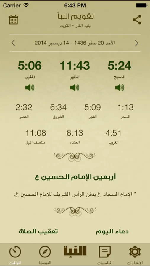 تقويم النبأ الخاص بالمواقيت الشرعية لدول العالم ، والذي يحتوي على: