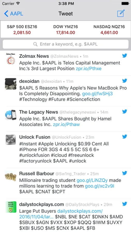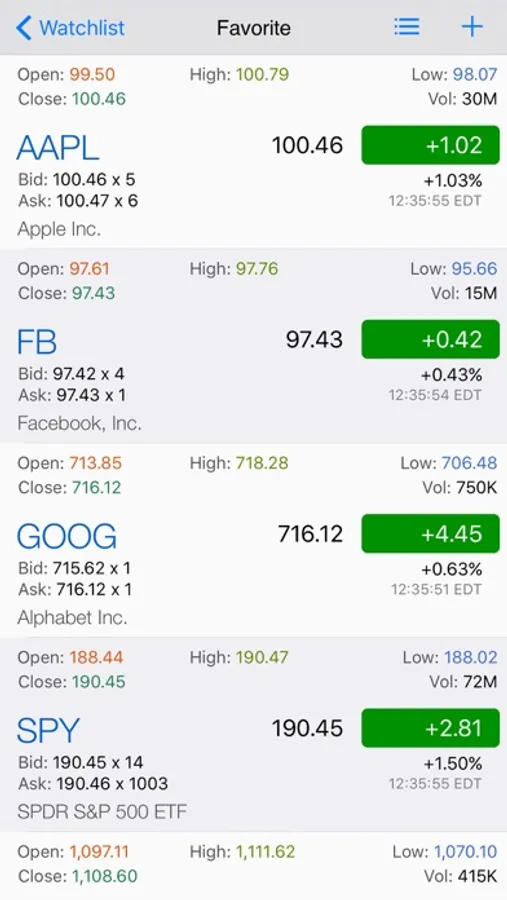 What's more, this app offers a very nice watch-list feature. You can create and manage unlimited watch-lists. The powerful watch-lists allow to group contents into Charted Sector View and exhibit a LIST of fully customized Charts (Multi-Chart View)! Adjust the technical indicator, chart type, and date range for the Multi Chart View and the app will automatically remember your settings. Create, modify, rename, sort, and delete watch-lists within seconds. With one glance, not only can you get the whole picture like change, change %, bid, ask, bid size, ask size, OHLC, volume, company, etc, but also quickly access the fibonacci lines / charts from there. Watch-list is so convenient that your market watching and researching become well organized and efficient.