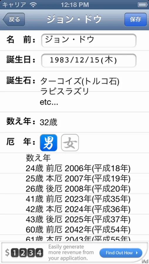 誕生日から、誕生日の和暦や干支、星座などを計算するアプリです。