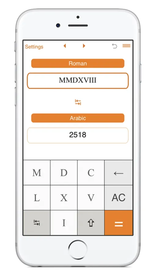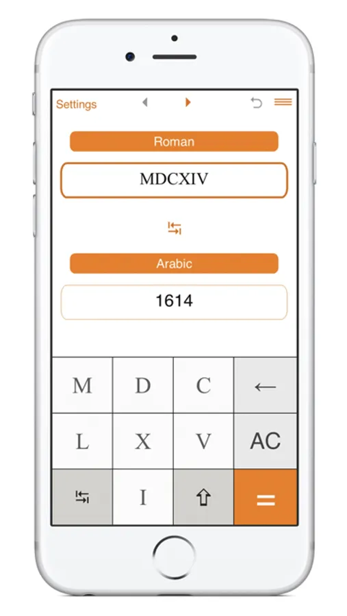 • Flip button to easily switch between Roman numerals and Arabic numbers.
