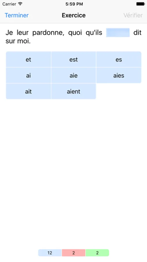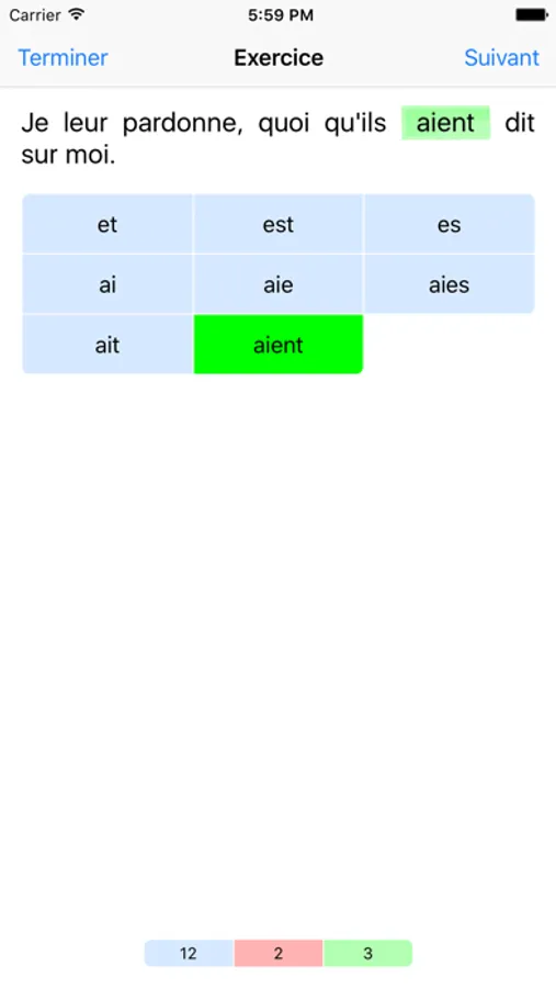 Cette App est paramétrable à souhait : Vous pouvez choisir précisément les homophones à exercer et le nombre de questions désiré.