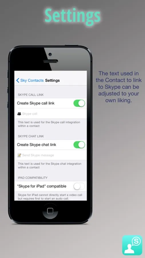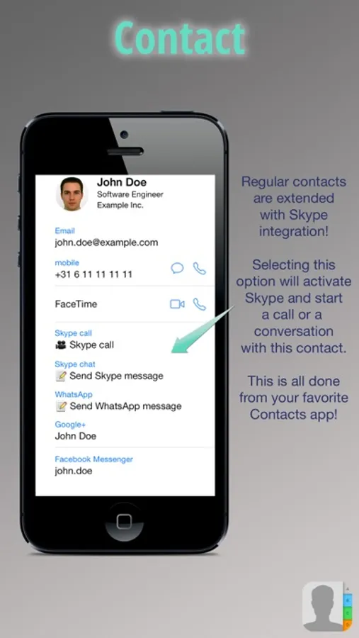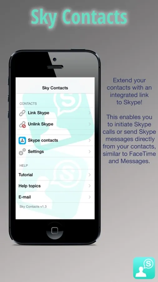 Sky Contacts connects Skype to your contacts and enables you to start a Skype call or a Skype conversation (by activating Skype) with the contact you are viewing from your favorite Contacts app.