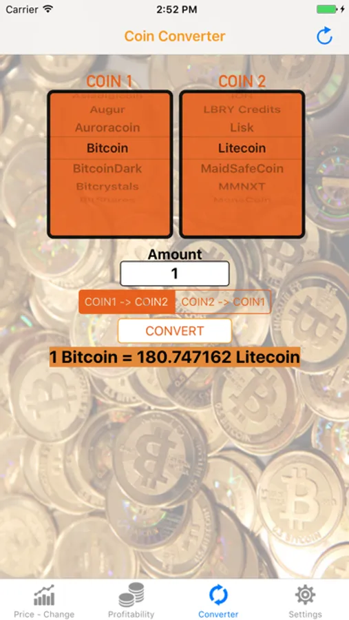 And also Coin Rates includes a crypto-coin converter so you can convert prices of each crypto to other.