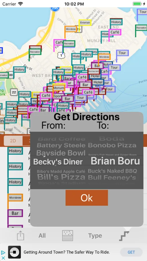 Follow the pulsing blue dot as you navigate your way around the city. Flags on the map show you where the sights are, and what they are. Looking for a something in particular? You can select a specific category. Want to visit historic sites, take a tour or harbor or island cruise, break for lunch? The app will display flags for the category of your choice. Tap on the flag and you will see the name of the site and a link to more information about it.