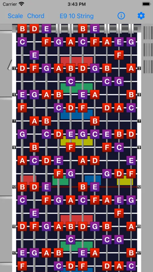 An interactive scale and chord finder for pedal steel guitar and now lap steel guitar. Support several 8, 10, 12 string copedent and tunings. You can now add your own pedal steel guitar codepents and lap steel guitar tunings.