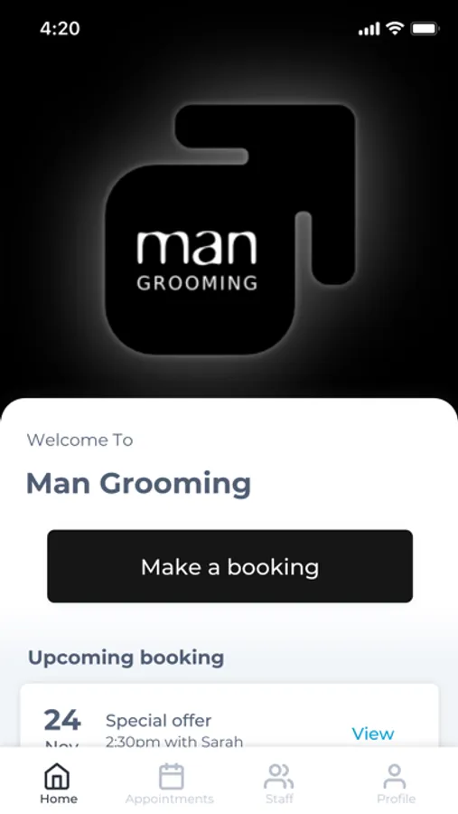 The Man Grooming app makes booking your appointments and managing your loyalty points even easier. You're just a few taps away from feeling good and looking great!