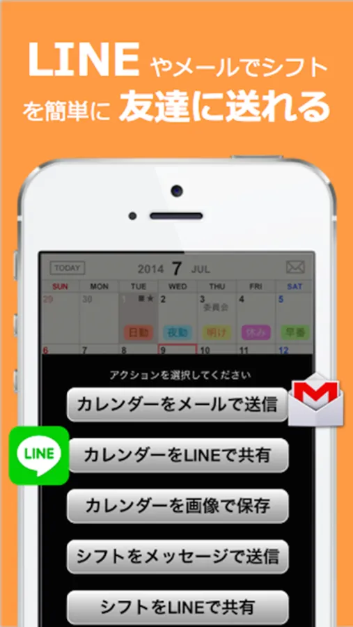 作成した勤務表は、gmailやyahooメールを使って友人や恋人に送ることができます。lineやfacebookやtwitterを使っても勤務表を送ることができ、簡単に自分以外の人と共有できます。