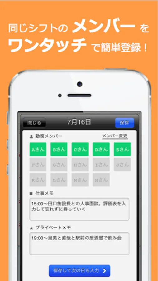 スタンプ感覚で勤務スケジュールをカレンダーに貼り付けられます。かわいいカレンダーは祝日にも対応。見易いデザインの為、カレンダーに直感的に貼り付けられます!